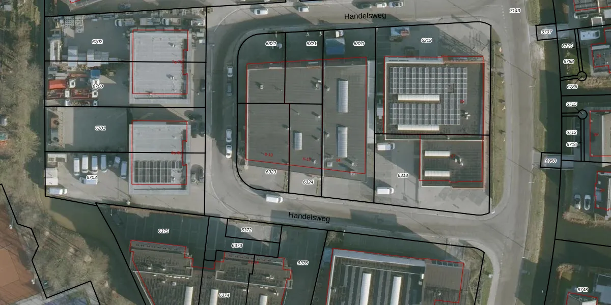 Handelsweg 12 is gelegen op kadastraal perceel RHO00A6324. Deze kadastrale aanduiding is uniek en wordt gebruikt door het Kadaster om eigendomsrechten en andere zakelijke rechten vast te leggen. Het perceel maakt onderdeel uit van de kadastrale gemeente Rhoon.