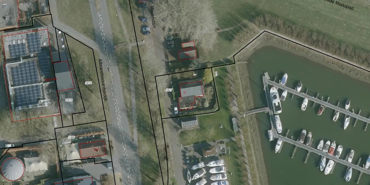 Het perceel waarop Havendam 21 staat heeft een oppervlakte van 741 m². Dit is een groot perceel. De perceeloppervlakte wordt geregistreerd door het Kadaster. Gedetailleerde informatie over de maten van dit perceel kunt u vinden in het rapport Kadastrale kaart met maatvoering van Havendam 21.