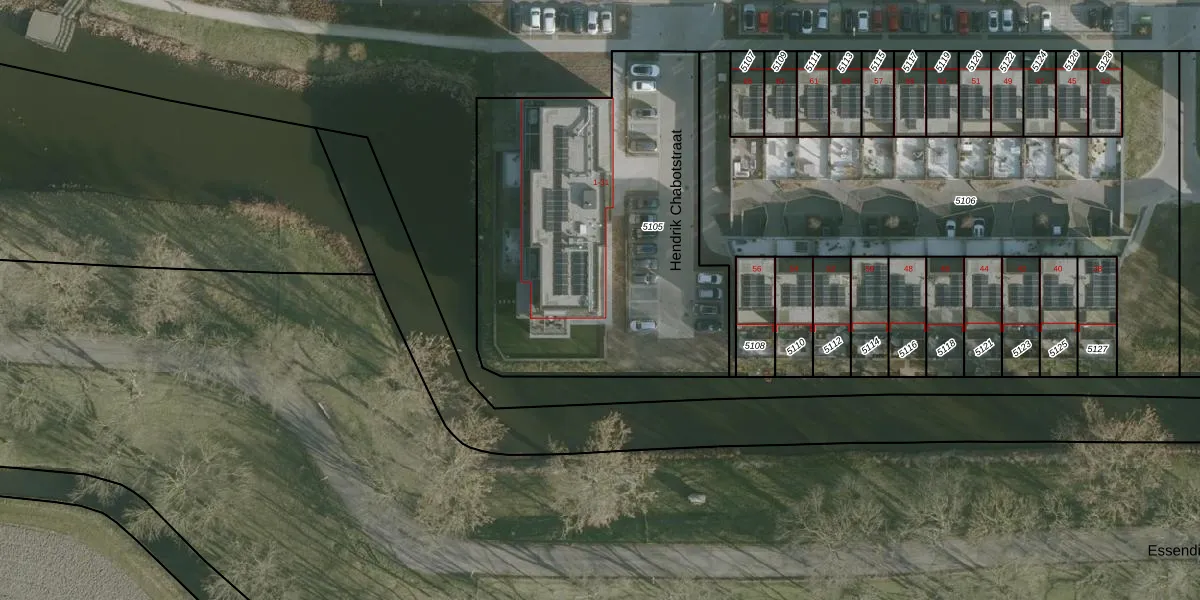 Het perceel waarop Hendrik Chabotstraat 5 staat heeft een oppervlakte van 1925 m². Dit is een zeer groot perceel. De perceeloppervlakte wordt geregistreerd door het Kadaster. Gedetailleerde informatie over de maten van dit perceel kunt u vinden in het rapport Kadastrale kaart met maatvoering van Hendrik Chabotstraat 5.