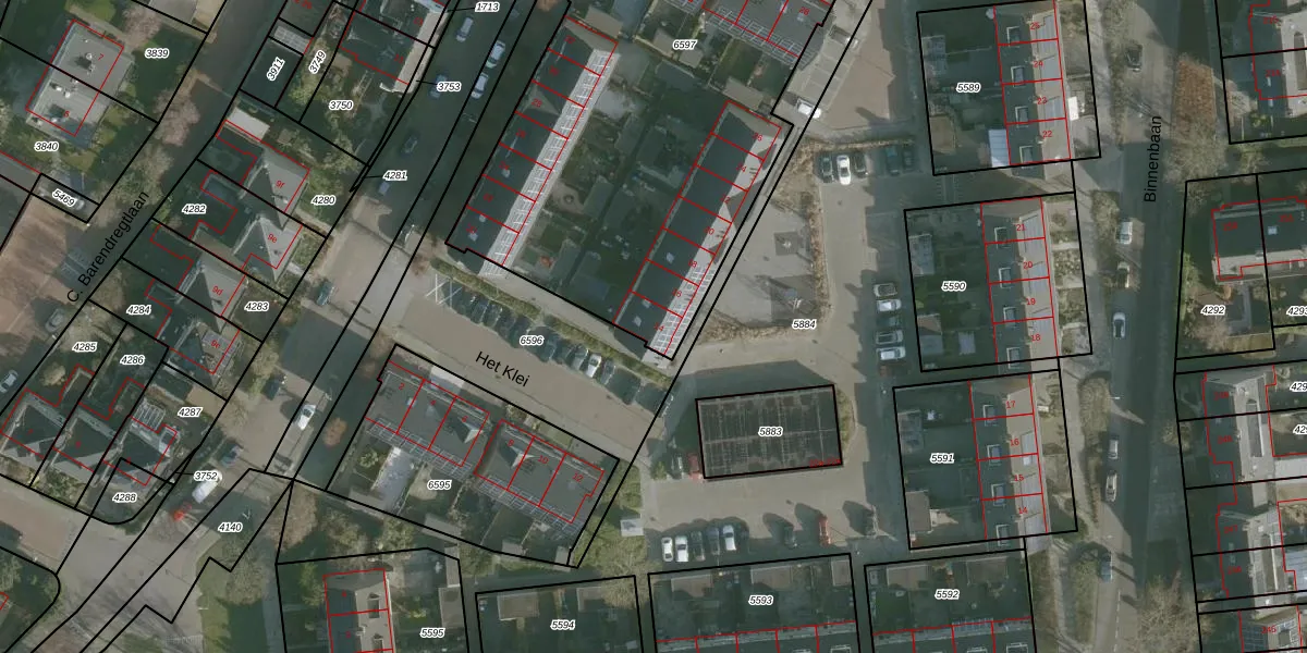 Het Klei 14 is gelegen op kadastraal perceel RHO00A6597. Deze kadastrale aanduiding is uniek en wordt gebruikt door het Kadaster om eigendomsrechten en andere zakelijke rechten vast te leggen. Het perceel maakt onderdeel uit van de kadastrale gemeente Rhoon.
