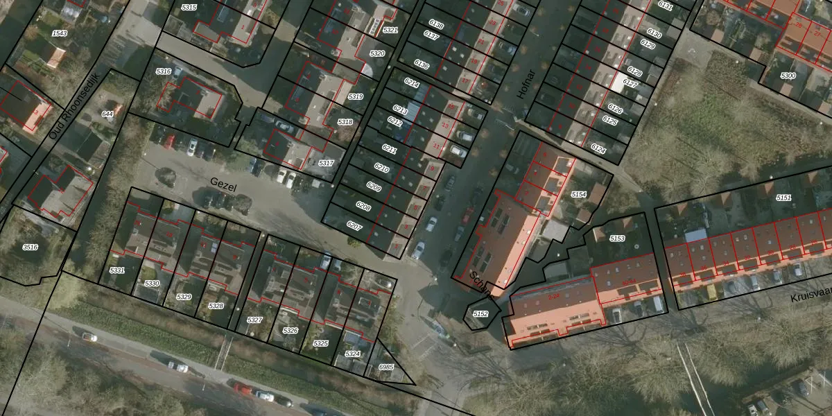 Hofnar 5 is gelegen op kadastraal perceel RHO00A6209. Deze kadastrale aanduiding is uniek en wordt gebruikt door het Kadaster om eigendomsrechten en andere zakelijke rechten vast te leggen. Het perceel maakt onderdeel uit van de kadastrale gemeente Rhoon.