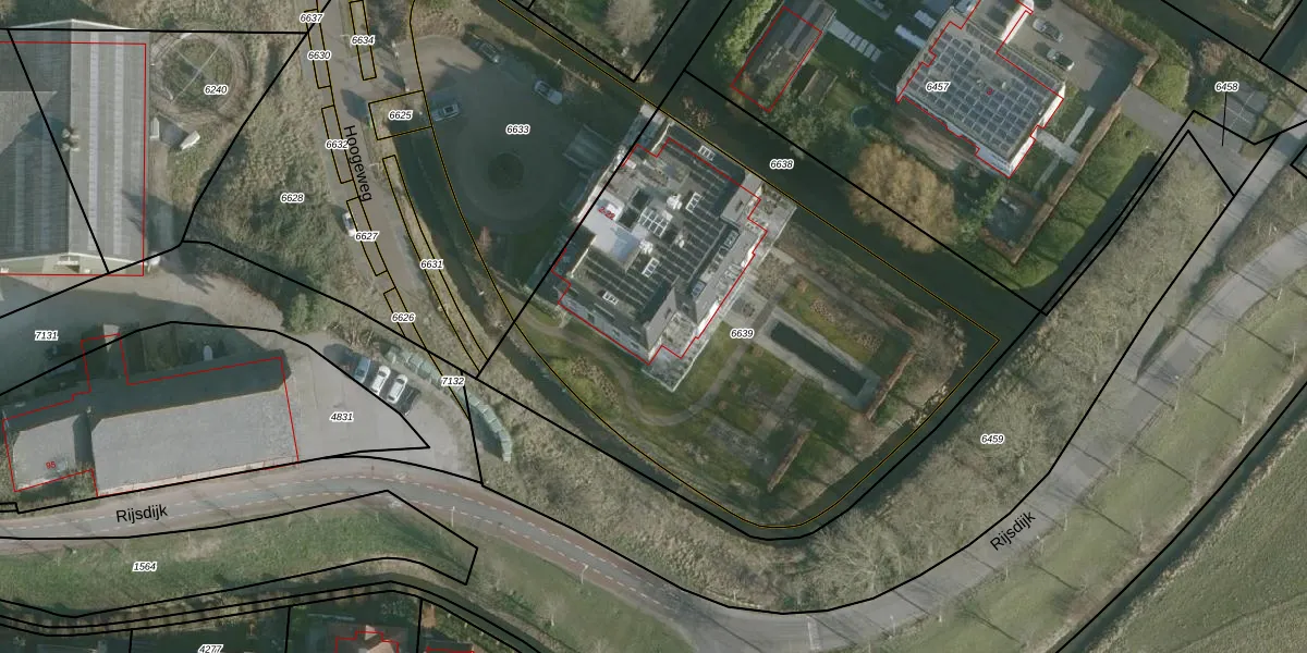 Het adres is gelegen op perceel 6639 in de sectie A en de kadastrale gemeente Rhoon. De kadastrale aanduiding is aldus RHO00-A-6639. De oppervlakte van het perceel is 2586 m². Dat is groter dan gemiddeld in Rhoon, waar de gemiddelde perceeloppervlakte op 2330,1 m² ligt. De grootste perceeloppervlakte in de kadastrale gemeente is 42,1 ha. De kleinste oppervlakte bedraagt 0 m². Op het perceel liggen in totaal 11 adressen. De huidige grenzen van het perceel zijn digitaal in de Basisregistratie Kadaster (BRK) geregistreerd op 16-02-2016.