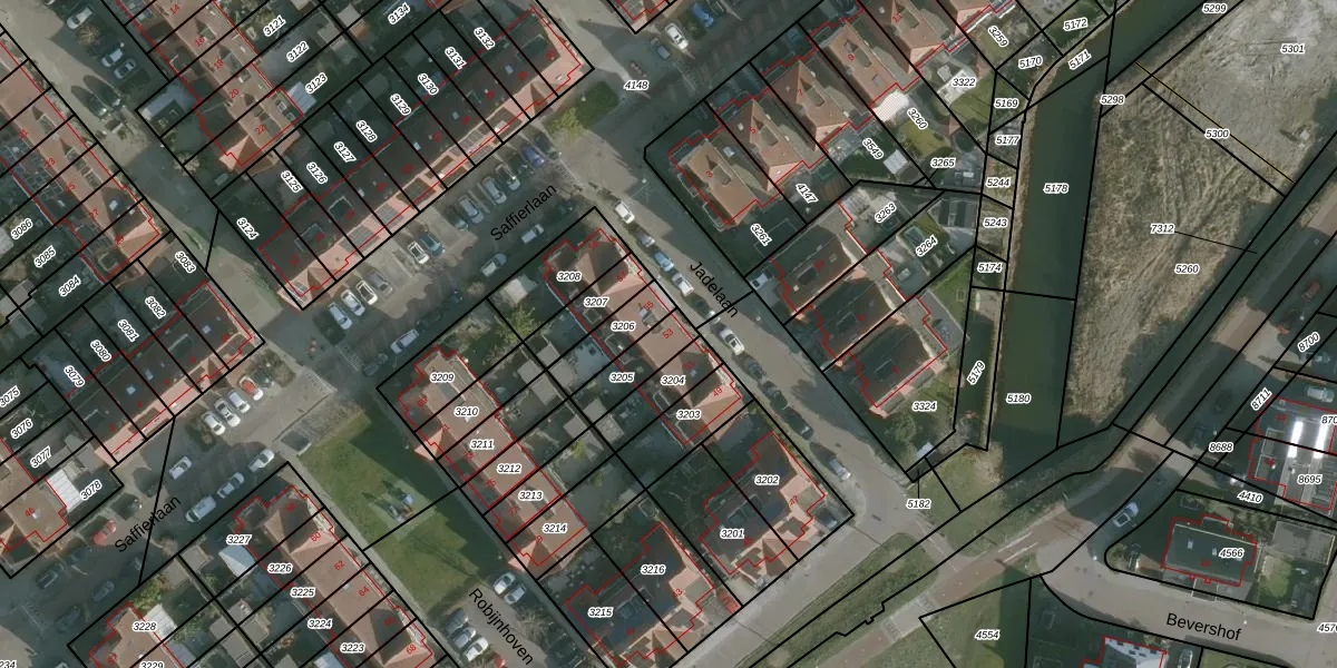 Jadelaan 53 is gelegen op kadastraal perceel RHO00B3205. Deze kadastrale aanduiding is uniek en wordt gebruikt door het Kadaster om eigendomsrechten en andere zakelijke rechten vast te leggen. Het perceel maakt onderdeel uit van de kadastrale gemeente Rhoon.