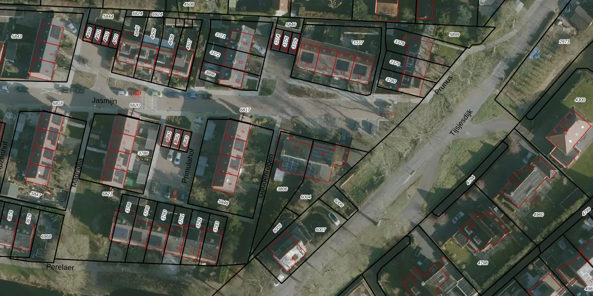Gebruik de zoekbalk of klik op een perceel voor informatie over de adressen binnen dit perceel.