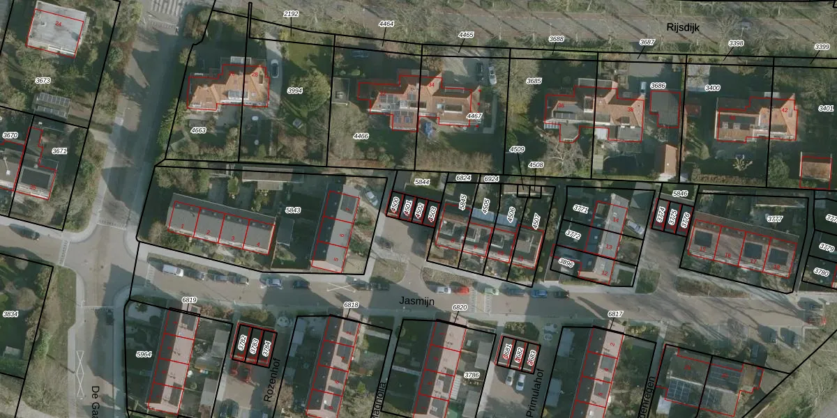 Jasmijn 7-c is gelegen op kadastraal perceel RHO00A4502. Deze kadastrale aanduiding is uniek en wordt gebruikt door het Kadaster om eigendomsrechten en andere zakelijke rechten vast te leggen. Het perceel maakt onderdeel uit van de kadastrale gemeente Rhoon.