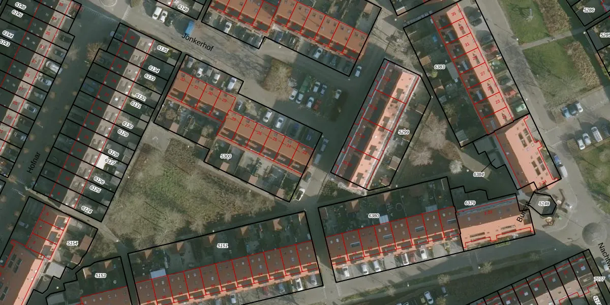 Jonkerhof 23 is gelegen op kadastraal perceel RHO00A5300. Deze kadastrale aanduiding is uniek en wordt gebruikt door het Kadaster om eigendomsrechten en andere zakelijke rechten vast te leggen. Het perceel maakt onderdeel uit van de kadastrale gemeente Rhoon.
