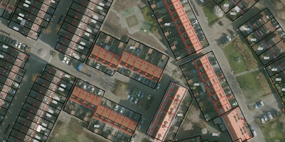 Het perceel waarop Jonkerhof 8 staat heeft een oppervlakte van 1281 m². Dit is een zeer groot perceel. De perceeloppervlakte wordt geregistreerd door het Kadaster. Gedetailleerde informatie over de maten van dit perceel kunt u vinden in het rapport Kadastrale kaart met maatvoering van Jonkerhof 8.