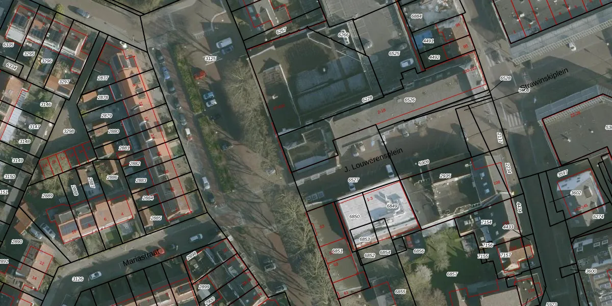 Het adres is gelegen op perceel 6526 in de sectie A en de kadastrale gemeente Rhoon. De kadastrale aanduiding is aldus RHO00-A-6526. Het perceel is kleiner dan gemiddeld in Rhoon. Het perceel is 795 m² groot, terwijl het gemiddelde ligt op 2330,1 m². De grootste perceeloppervlakte in de kadastrale gemeente is 42,1 ha. De kleinste oppervlakte bedraagt 0 m². Op het perceel liggen in totaal 12 adressen. In de Basisregistratie Kadaster (BRK) werden de grenzen van het perceel geregistreerd op 11-09-2013.