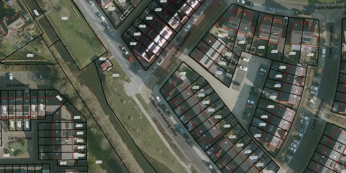 Gebruik de zoekbalk of klik op een perceel voor informatie over de adressen binnen dit perceel.
