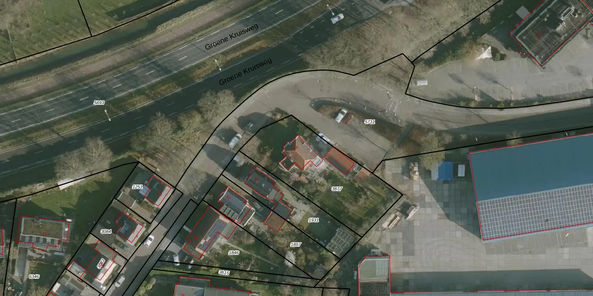 Het adres is gelegen op perceel 3877 in de sectie A en de kadastrale gemeente Rhoon. De kadastrale aanduiding is aldus RHO00-A-3877. Het perceel is kleiner dan gemiddeld in Rhoon. Het perceel is 990 m² groot, terwijl het gemiddelde ligt op 2330,1 m². Het kleinste perceel in de kadastrale gemeente is 0 m² groot. De grootste perceeloppervlakte is 42,1 ha. Er zijn geen andere adressen aanwezig op het perceel. De huidige grenzen van het perceel zijn digitaal in de Basisregistratie Kadaster (BRK) geregistreerd op 18-12-2001.