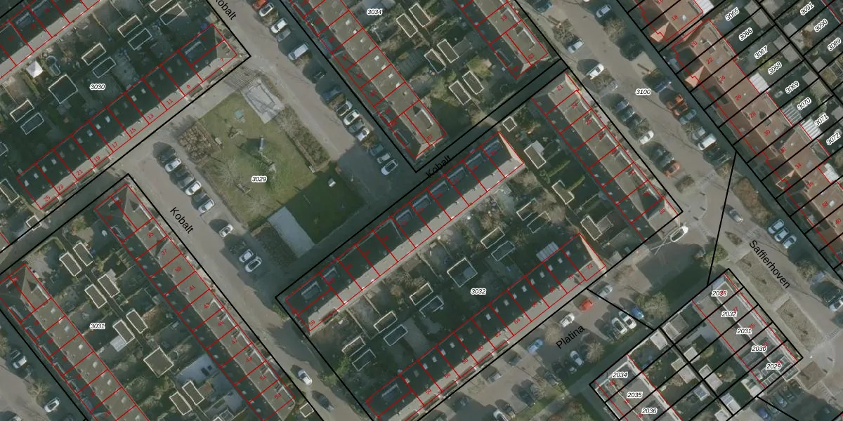 Kobalt 73 is gelegen op kadastraal perceel RHO00B3032. Deze kadastrale aanduiding is uniek en wordt gebruikt door het Kadaster om eigendomsrechten en andere zakelijke rechten vast te leggen. Het perceel maakt onderdeel uit van de kadastrale gemeente Rhoon.