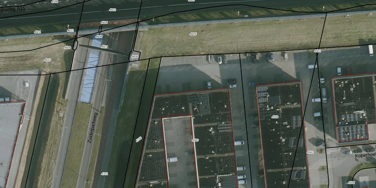 Het adres is gelegen op perceel 4560 in de sectie B en de kadastrale gemeente Rhoon. De kadastrale aanduiding is aldus RHO00-B-4560. De gemiddelde perceeloppervlakte in de kadastrale gemeente Rhoon is 2330,1 m². Dit perceel is met zijn 4535 m² dus groter dan gemiddeld. De grootste perceeloppervlakte in de kadastrale gemeente is 42,1 ha. De kleinste oppervlakte bedraagt 0 m². Op het perceel zijn 27 adressen aanwezig. De huidige grenzen van het perceel zijn digitaal in de Basisregistratie Kadaster (BRK) geregistreerd op 12-02-2021.