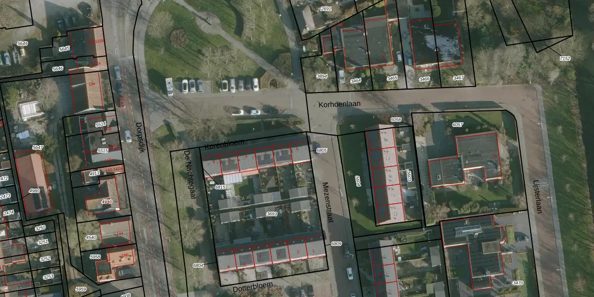 Het perceel waarop Korenbloem 1 staat heeft een oppervlakte van 1716 m². Dit is een zeer groot perceel. De perceeloppervlakte wordt geregistreerd door het Kadaster. Gedetailleerde informatie over de maten van dit perceel kunt u vinden in het rapport Kadastrale kaart met maatvoering van Korenbloem 1.