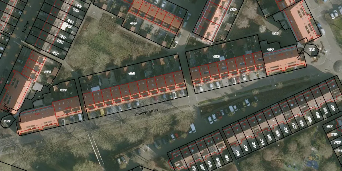 Het perceel waarop Kruisvaarder 20 staat heeft een oppervlakte van 1506 m². Dit is een zeer groot perceel. De perceeloppervlakte wordt geregistreerd door het Kadaster. Gedetailleerde informatie over de maten van dit perceel kunt u vinden in het rapport Kadastrale kaart met maatvoering van Kruisvaarder 20.