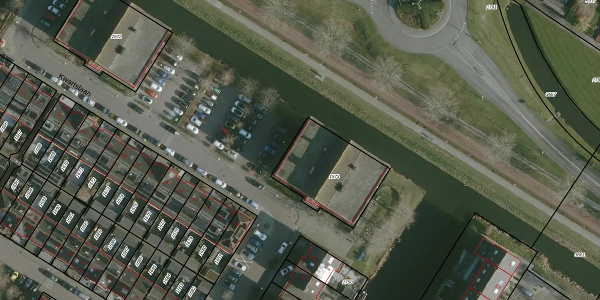 Kwartslaan 49 is gelegen op kadastraal perceel RHO00B1573. Deze kadastrale aanduiding is uniek en wordt gebruikt door het Kadaster om eigendomsrechten en andere zakelijke rechten vast te leggen. Het perceel maakt onderdeel uit van de kadastrale gemeente Rhoon.