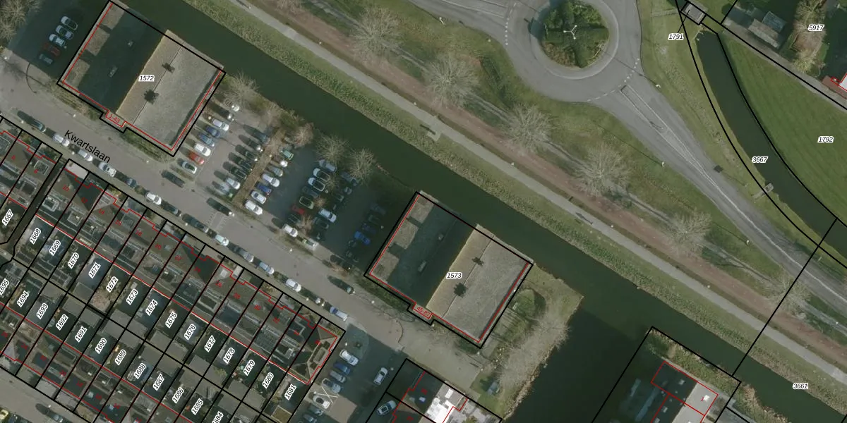 Kwartslaan 53 is gelegen op kadastraal perceel RHO00B1573. Deze kadastrale aanduiding is uniek en wordt gebruikt door het Kadaster om eigendomsrechten en andere zakelijke rechten vast te leggen. Het perceel maakt onderdeel uit van de kadastrale gemeente Rhoon.