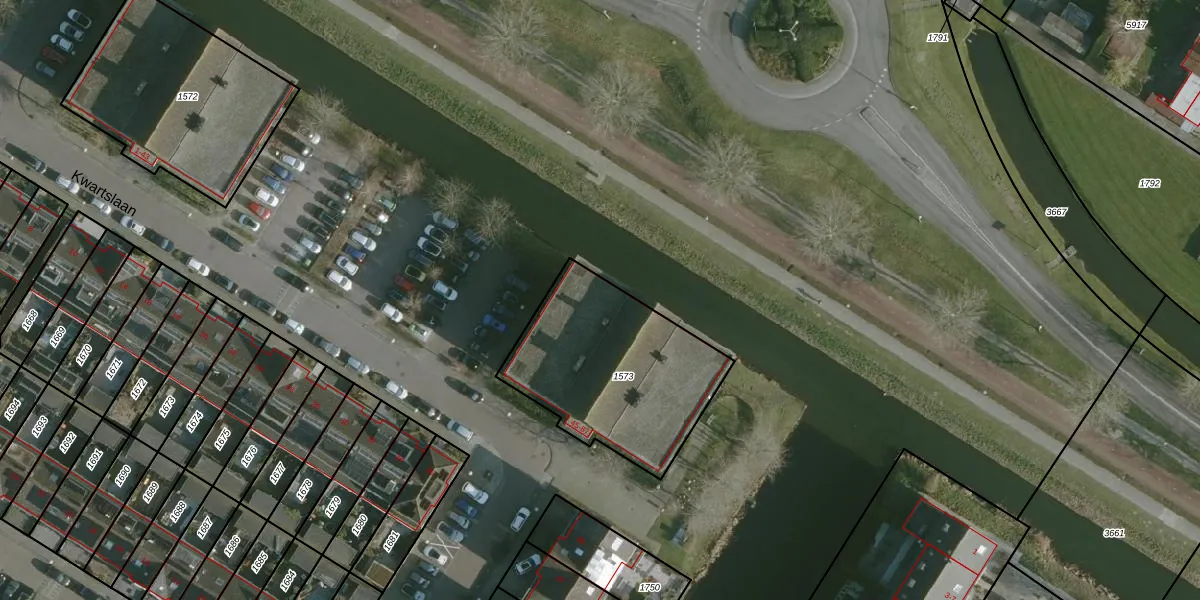 Kwartslaan 55 is gelegen op kadastraal perceel RHO00B1573. Deze kadastrale aanduiding is uniek en wordt gebruikt door het Kadaster om eigendomsrechten en andere zakelijke rechten vast te leggen. Het perceel maakt onderdeel uit van de kadastrale gemeente Rhoon.