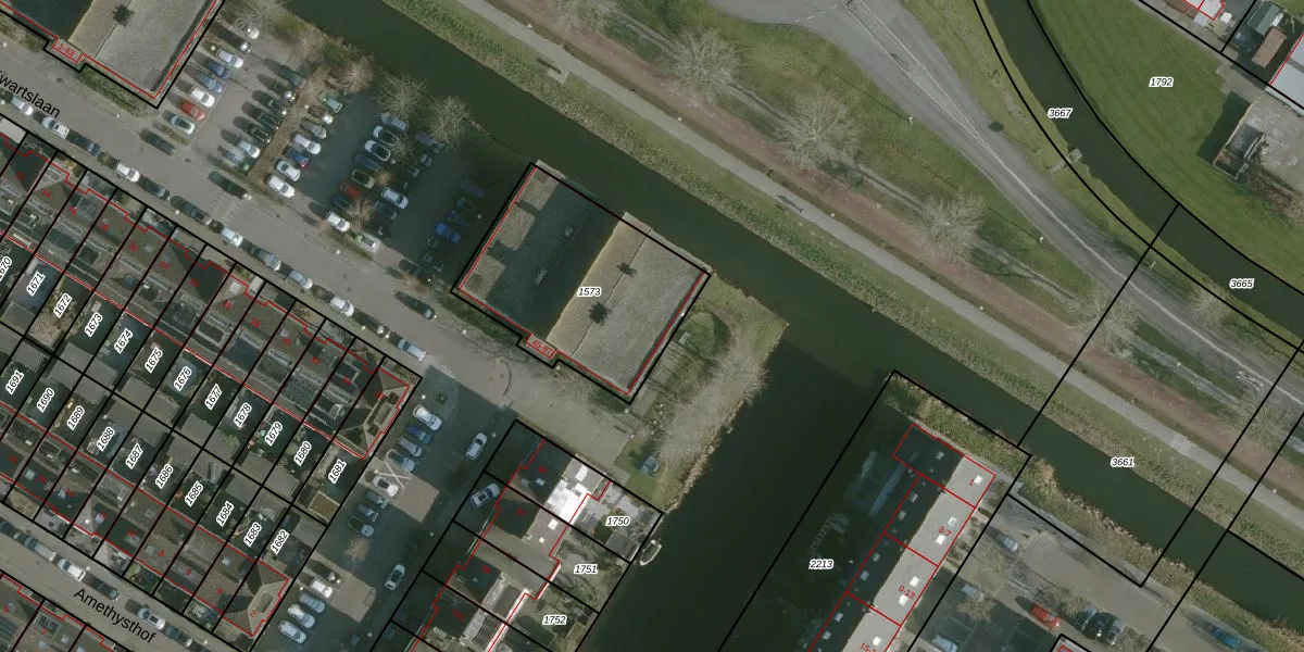 Het adres is gelegen op perceel 1573 in de sectie B en de kadastrale gemeente Rhoon. De kadastrale aanduiding is aldus RHO00-B-1573. De gemiddelde perceelgrootte in Rhoon is 2330,1 m². Dit perceel is kleiner: de perceeloppervlakte bedraagt 767 m². Het grootste perceel in de kadastrale gemeente is 42,1 ha. Het kleinste perceel heeft een oppervlakte van 0 m². Op het perceel zijn 22 adressen aanwezig. In de Basisregistratie Kadaster (BRK) werden de grenzen van het perceel geregistreerd op 15-11-2010.