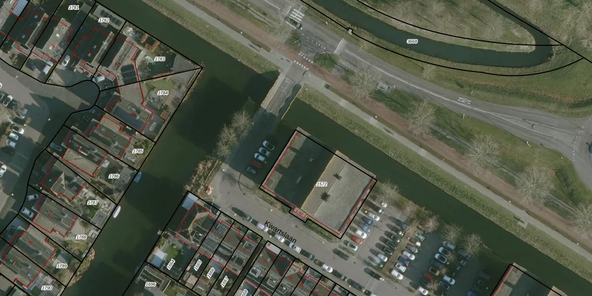 Kwartslaan 9 is gelegen op kadastraal perceel RHO00B1572. Deze kadastrale aanduiding is uniek en wordt gebruikt door het Kadaster om eigendomsrechten en andere zakelijke rechten vast te leggen. Het perceel maakt onderdeel uit van de kadastrale gemeente Rhoon.