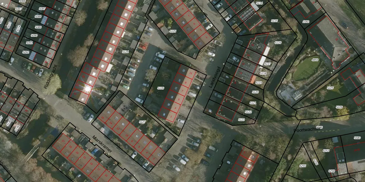 Het perceel waarop Landvoogd 7 staat heeft een oppervlakte van 838 m². Dit is een groot perceel. De perceeloppervlakte wordt geregistreerd door het Kadaster. Gedetailleerde informatie over de maten van dit perceel kunt u vinden in het rapport Kadastrale kaart met maatvoering van Landvoogd 7.