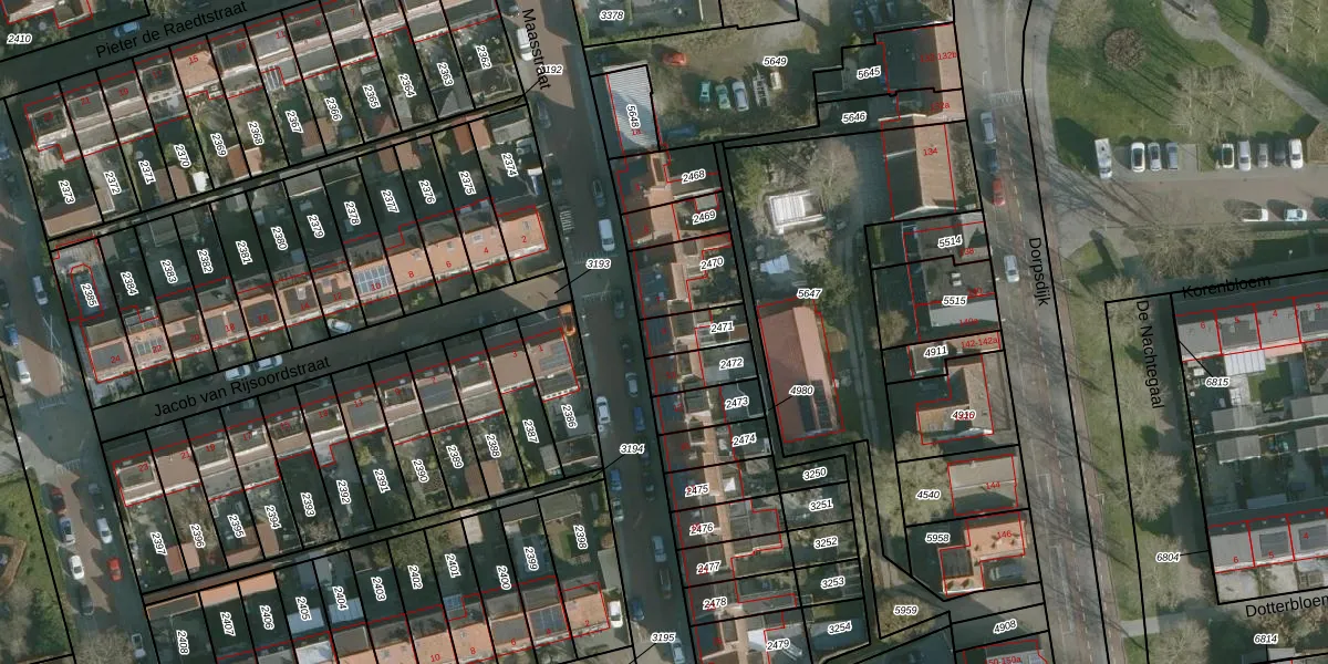 Gebruik de zoekbalk of klik op een perceel voor informatie over de adressen binnen dit perceel.