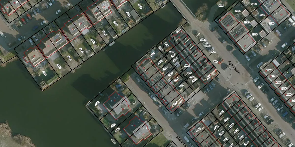 Gebruik de zoekbalk of klik op een perceel voor informatie over de adressen binnen dit perceel.