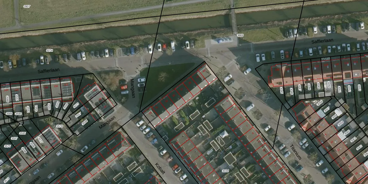 Het perceel waarop Mangaan 37 staat heeft een oppervlakte van 3940 m². Dit is een zeer groot perceel. De perceeloppervlakte wordt geregistreerd door het Kadaster. Gedetailleerde informatie over de maten van dit perceel kunt u vinden in het rapport Kadastrale kaart met maatvoering van Mangaan 37.
