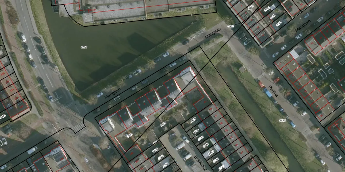 Het perceel waarop Mangaan 7 staat heeft een oppervlakte van 1180 m². Dit is een zeer groot perceel. De perceeloppervlakte wordt geregistreerd door het Kadaster. Gedetailleerde informatie over de maten van dit perceel kunt u vinden in het rapport Kadastrale kaart met maatvoering van Mangaan 7.