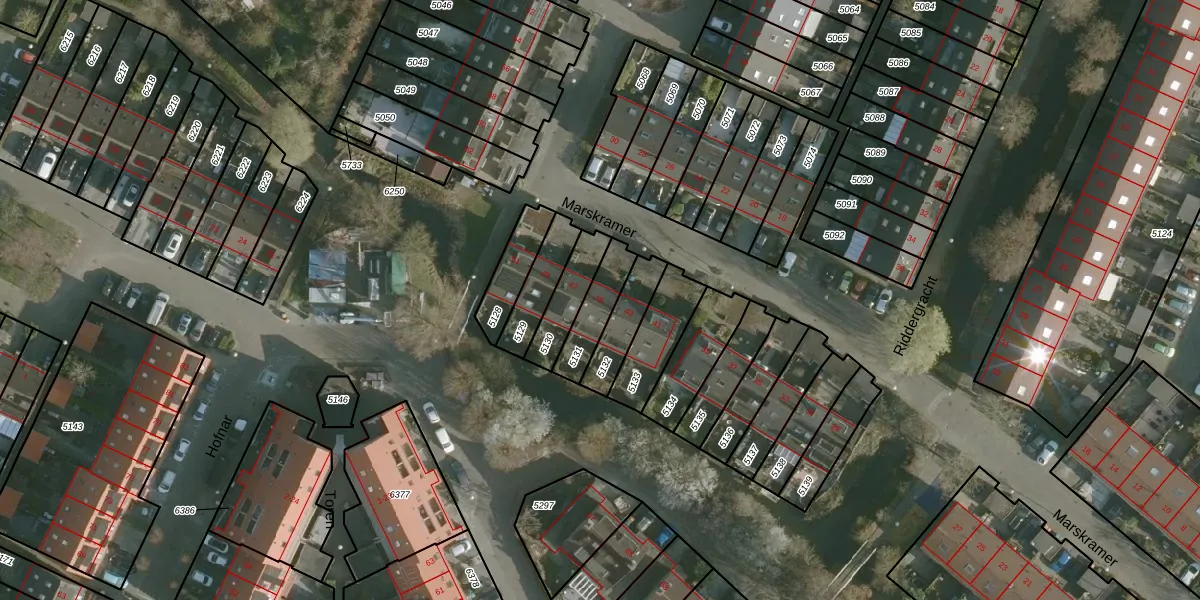 Het perceel waarop Marskramer 45 staat heeft een oppervlakte van 123 m². Dit is een middelgroot perceel. De perceeloppervlakte wordt geregistreerd door het Kadaster. Gedetailleerde informatie over de maten van dit perceel kunt u vinden in het rapport Kadastrale kaart met maatvoering van Marskramer 45.
