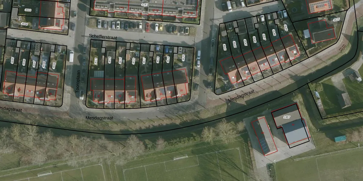 Gebruik de zoekbalk of klik op een perceel voor informatie over de adressen binnen dit perceel.