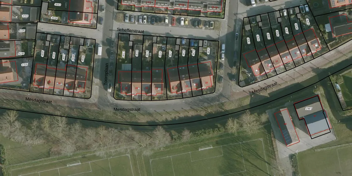 Gebruik de zoekbalk of klik op een perceel voor informatie over de adressen binnen dit perceel.
