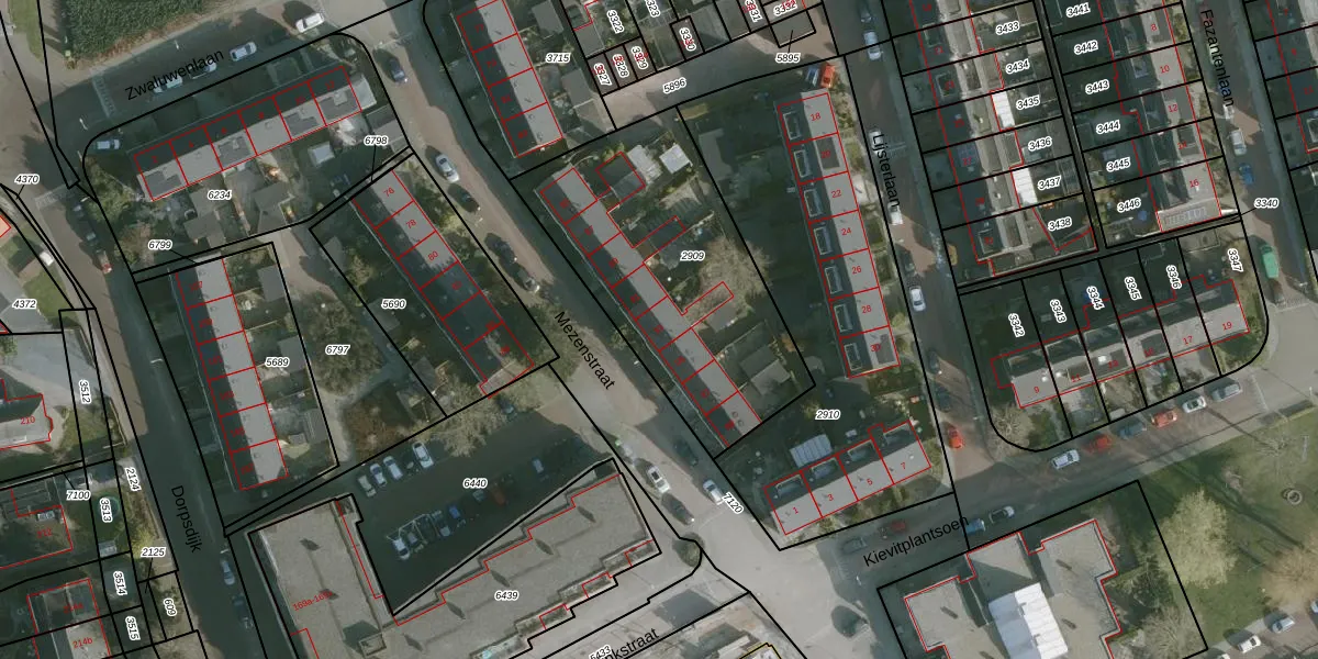 Het perceel waarop Mezenstraat 93 staat heeft een oppervlakte van 1158 m². Dit is een zeer groot perceel. De perceeloppervlakte wordt geregistreerd door het Kadaster. Gedetailleerde informatie over de maten van dit perceel kunt u vinden in het rapport Kadastrale kaart met maatvoering van Mezenstraat 93.
