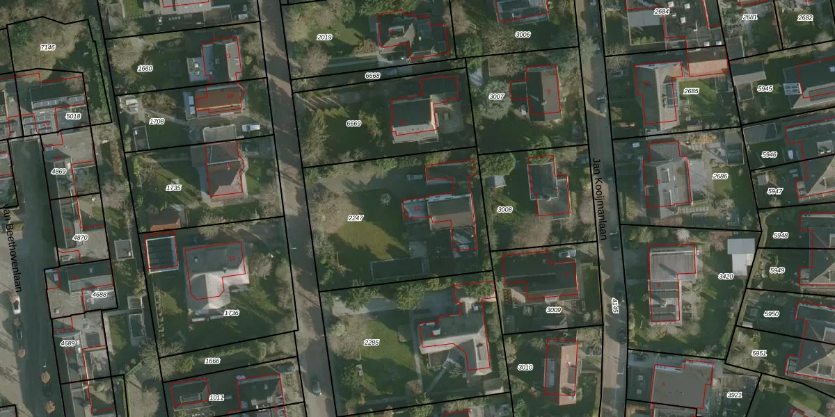 Het adres is gelegen op perceel 2247 in de sectie A en de kadastrale gemeente Rhoon. De kadastrale aanduiding is aldus RHO00-A-2247. De gemiddelde perceelgrootte in Rhoon is 2330,1 m². Dit perceel is kleiner: de perceeloppervlakte bedraagt 1262 m². Het grootste perceel in de kadastrale gemeente is 42,1 ha. Het kleinste perceel heeft een oppervlakte van 0 m². Er zijn geen andere adressen aanwezig op het perceel. De laatste wijziging in het de Basisregistratie Kadaster (BRK) was op 19-12-2001.