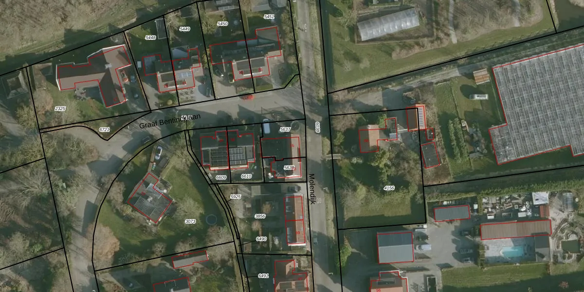 Het perceel waarop Molendijk 75 staat heeft een oppervlakte van 188 m². Dit is een middelgroot perceel. De perceeloppervlakte wordt geregistreerd door het Kadaster. Gedetailleerde informatie over de maten van dit perceel kunt u vinden in het rapport Kadastrale kaart met maatvoering van Molendijk 75.