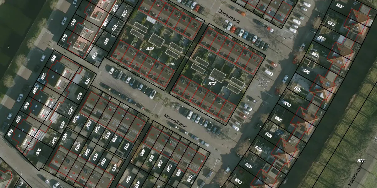 Mosselbank 9 is gelegen op kadastraal perceel RHO00B2397. Deze kadastrale aanduiding is uniek en wordt gebruikt door het Kadaster om eigendomsrechten en andere zakelijke rechten vast te leggen. Het perceel maakt onderdeel uit van de kadastrale gemeente Rhoon.