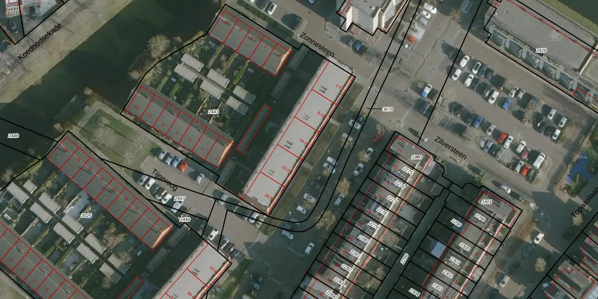 Onyxlaan 18 is gelegen op kadastraal perceel RHO00B2443. Deze kadastrale aanduiding is uniek en wordt gebruikt door het Kadaster om eigendomsrechten en andere zakelijke rechten vast te leggen. Het perceel maakt onderdeel uit van de kadastrale gemeente Rhoon.