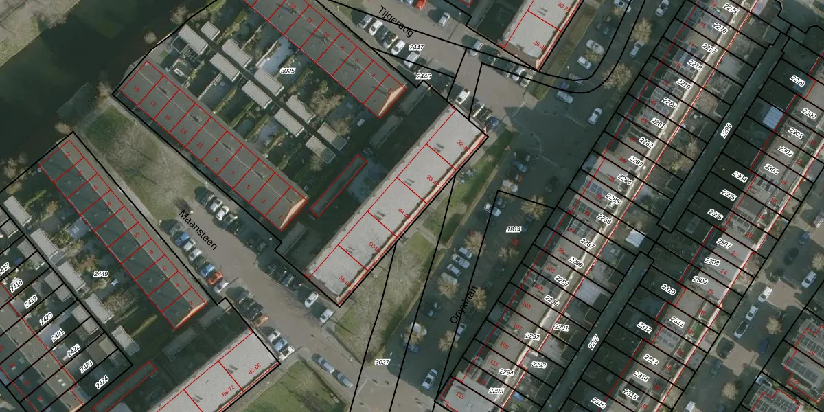 Onyxlaan 44 is gelegen op kadastraal perceel RHO00B3025. Deze kadastrale aanduiding is uniek en wordt gebruikt door het Kadaster om eigendomsrechten en andere zakelijke rechten vast te leggen. Het perceel maakt onderdeel uit van de kadastrale gemeente Rhoon.