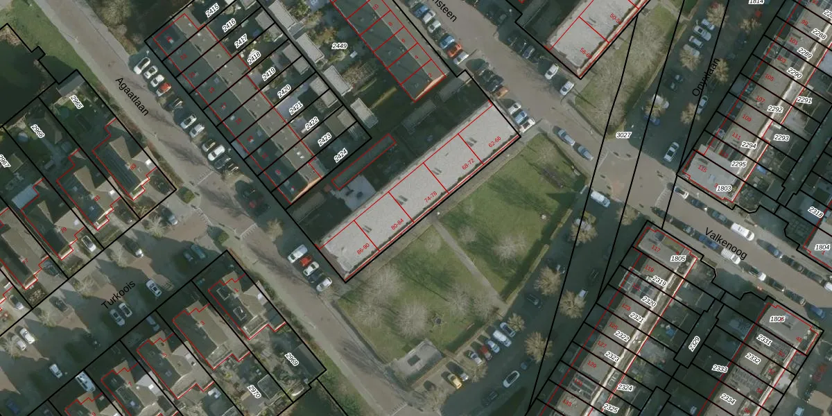 Onyxlaan 78 is gelegen op kadastraal perceel RHO00B2449. Deze kadastrale aanduiding is uniek en wordt gebruikt door het Kadaster om eigendomsrechten en andere zakelijke rechten vast te leggen. Het perceel maakt onderdeel uit van de kadastrale gemeente Rhoon.