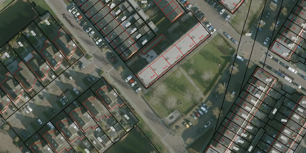 Onyxlaan 86 is gelegen op kadastraal perceel RHO00B2449. Deze kadastrale aanduiding is uniek en wordt gebruikt door het Kadaster om eigendomsrechten en andere zakelijke rechten vast te leggen. Het perceel maakt onderdeel uit van de kadastrale gemeente Rhoon.