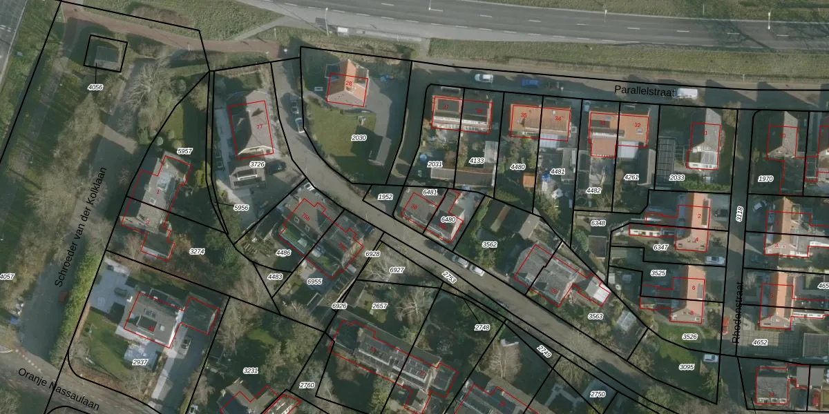 Het perceel waarop Parallelstraat 38 staat heeft een oppervlakte van 97 m². Dit is een klein perceel. De perceeloppervlakte wordt geregistreerd door het Kadaster. Gedetailleerde informatie over de maten van dit perceel kunt u vinden in het rapport Kadastrale kaart met maatvoering van Parallelstraat 38.