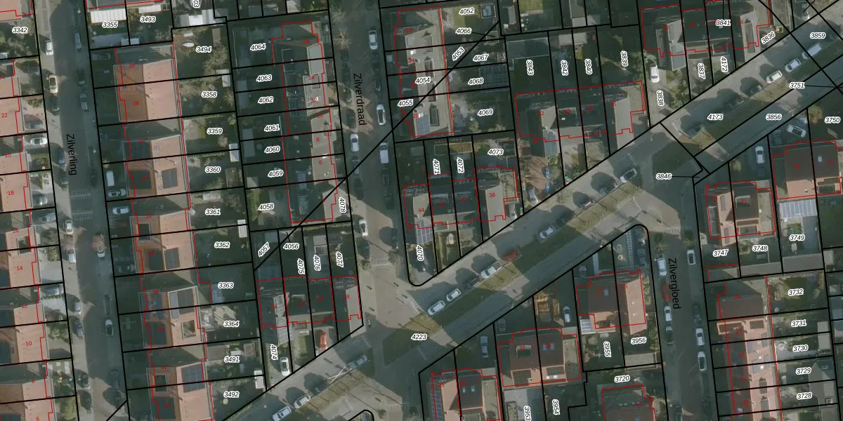 Gebruik de zoekbalk of klik op een perceel voor informatie over de adressen binnen dit perceel.