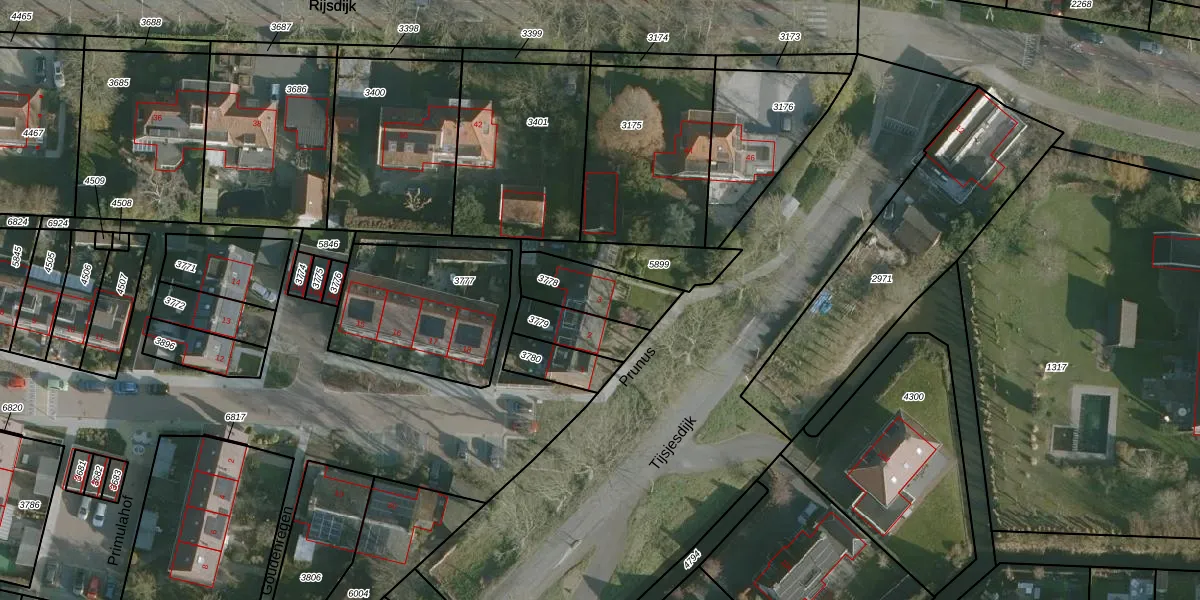 Gebruik de zoekbalk of klik op een perceel voor informatie over de adressen binnen dit perceel.