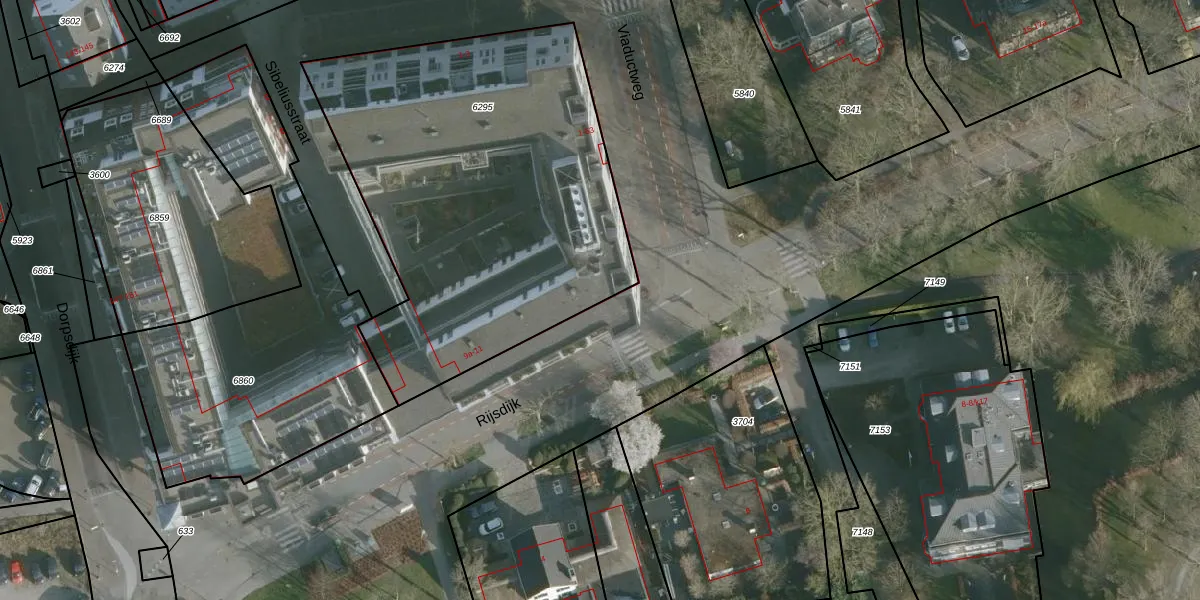 Het adres is gelegen op perceel 6295 in de sectie A en de kadastrale gemeente Rhoon. De kadastrale aanduiding is aldus RHO00-A-6295. Het perceel is 2212 m² groot. Dat is kleiner dan de gemiddelde perceeloppervlakte in Rhoon, dat op 2337,2 m² ligt. De grootste perceeloppervlakte in de kadastrale gemeente is 42,1 ha. De kleinste oppervlakte bedraagt 0 m². Er zijn 30 adressen aanwezig op het perceel. In de Basisregistratie Kadaster (BRK) werden de grenzen van het perceel geregistreerd op 10-09-2020.