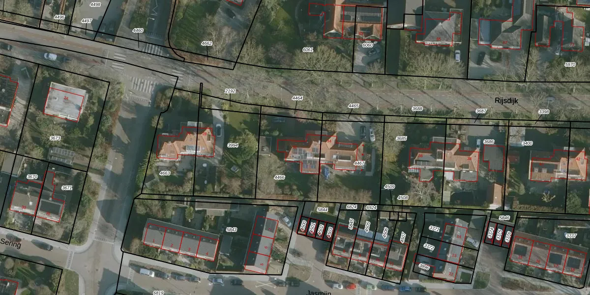 Rijsdijk 32 is gelegen op kadastraal perceel RHO00A4466. Deze kadastrale aanduiding is uniek en wordt gebruikt door het Kadaster om eigendomsrechten en andere zakelijke rechten vast te leggen. Het perceel maakt onderdeel uit van de kadastrale gemeente Rhoon.