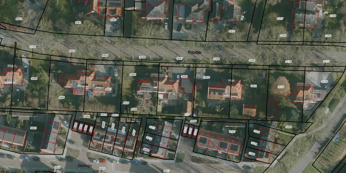 Het perceel waarop Rijsdijk 38 staat heeft een oppervlakte van 605 m². Dit is een groot perceel. De perceeloppervlakte wordt geregistreerd door het Kadaster. Gedetailleerde informatie over de maten van dit perceel kunt u vinden in het rapport Kadastrale kaart met maatvoering van Rijsdijk 38.