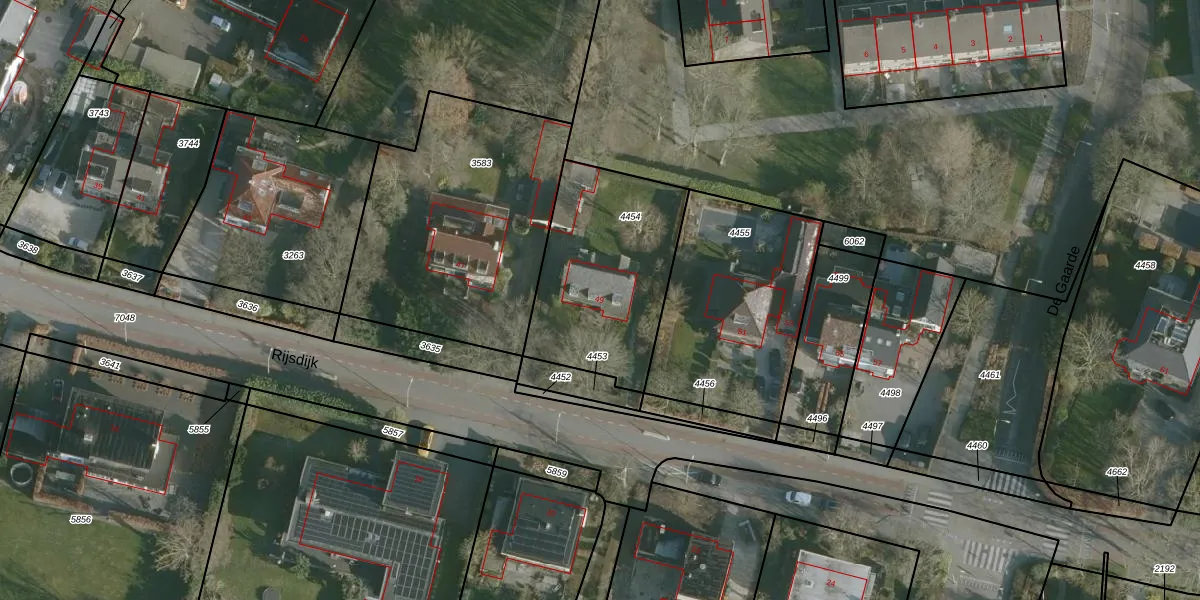 Het perceel waarop Rijsdijk 49 staat heeft een oppervlakte van 710 m². Dit is een groot perceel. De perceeloppervlakte wordt geregistreerd door het Kadaster. Gedetailleerde informatie over de maten van dit perceel kunt u vinden in het rapport Kadastrale kaart met maatvoering van Rijsdijk 49.