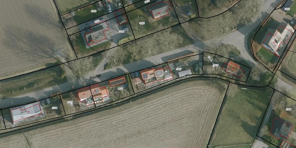 Het perceel waarop Rijsdijk 86 staat heeft een oppervlakte van 640 m². Dit is een groot perceel. De perceeloppervlakte wordt geregistreerd door het Kadaster. Gedetailleerde informatie over de maten van dit perceel kunt u vinden in het rapport Kadastrale kaart met maatvoering van Rijsdijk 86.