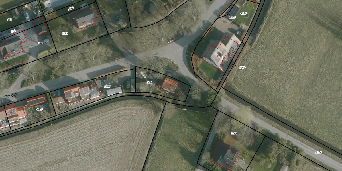 Het perceel waarop Rijsdijk 90 staat heeft een oppervlakte van 395 m². Dit is een groot perceel. De perceeloppervlakte wordt geregistreerd door het Kadaster. Gedetailleerde informatie over de maten van dit perceel kunt u vinden in het rapport Kadastrale kaart met maatvoering van Rijsdijk 90.