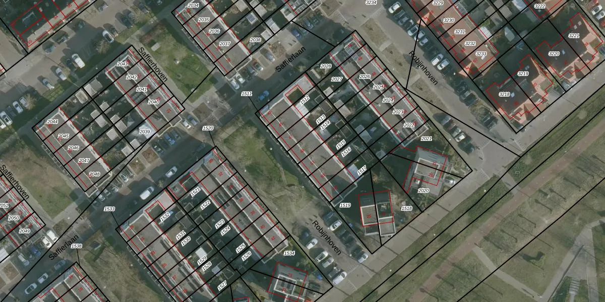 Gebruik de zoekbalk of klik op een perceel voor informatie over de adressen binnen dit perceel.