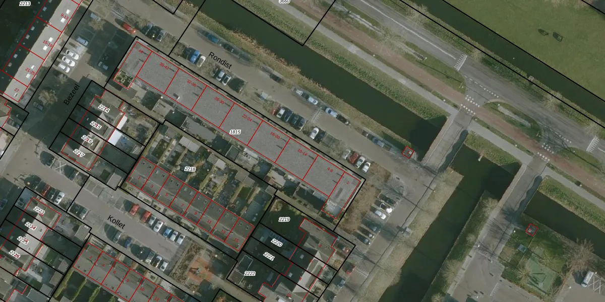 Het adres is gelegen op perceel 1815 in de sectie B en de kadastrale gemeente Rhoon. De kadastrale aanduiding is aldus RHO00-B-1815. Het perceel is 1730 m² groot. Dat is kleiner dan de gemiddelde perceeloppervlakte in Rhoon, dat op 2330,1 m² ligt. Het grootste perceel in de kadastrale gemeente is 42,1 ha. Het kleinste perceel heeft een oppervlakte van 0 m². Op het perceel zijn 22 adressen aanwezig. De huidige grenzen van het perceel zijn digitaal in de Basisregistratie Kadaster (BRK) geregistreerd op 11-11-2010.